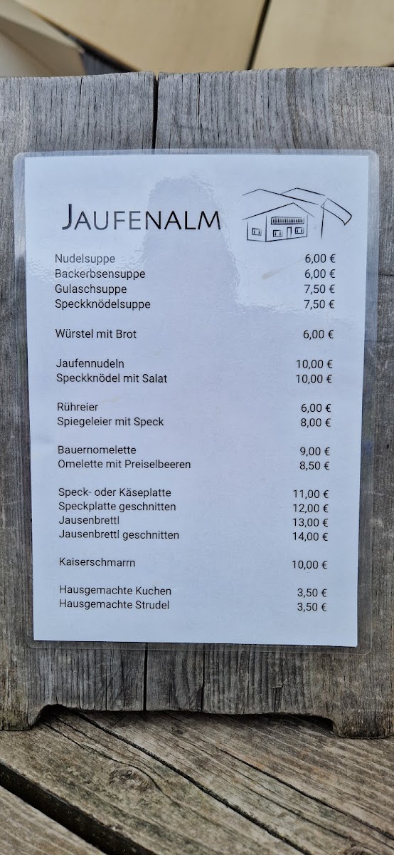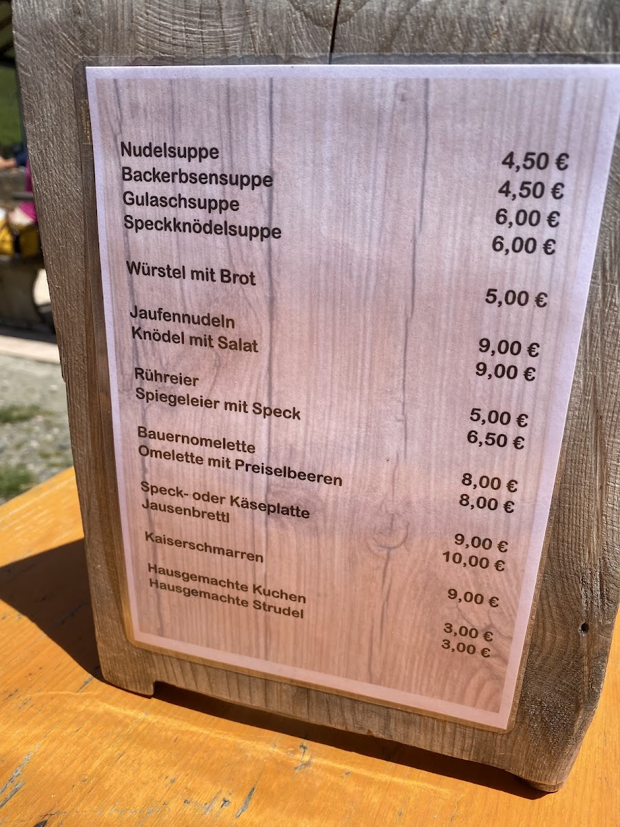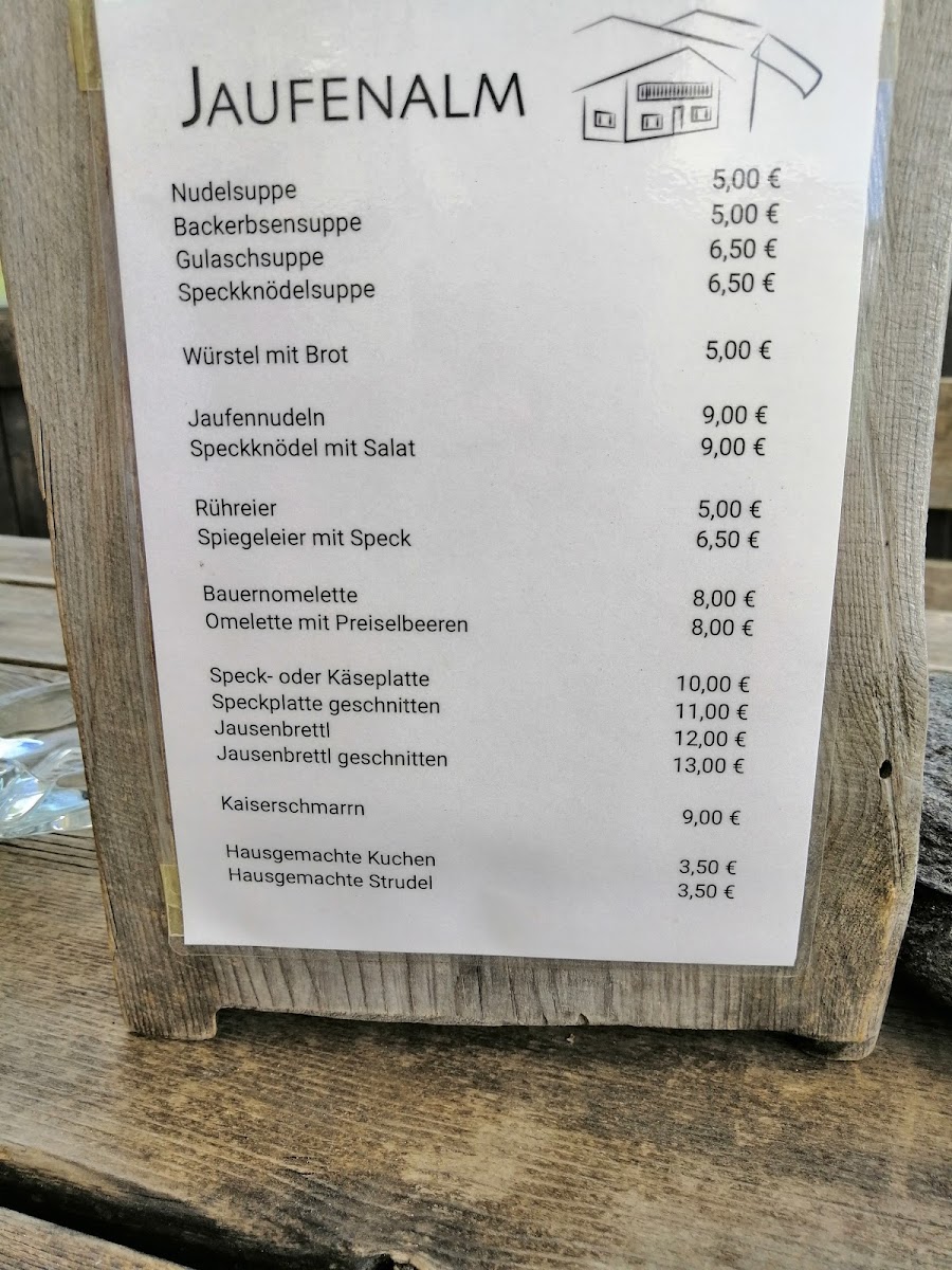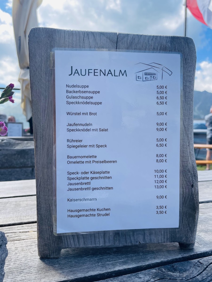 Introducing the menu at Jaufen Alm, nestled in the scenic Passiria Valley, is an experience that marries cuisine with nature. This charming wooden restaurant offers delightful views where you can watch content cows graze while savoring delicious offerings. Praised for its accommodating service, the friendly staff speaks German and English, ensuring all guests feel welcome. Highlights include simple yet flavorful dishes made from local ingredients, complemented by exceptional homemade pies and exquisite coffee.
